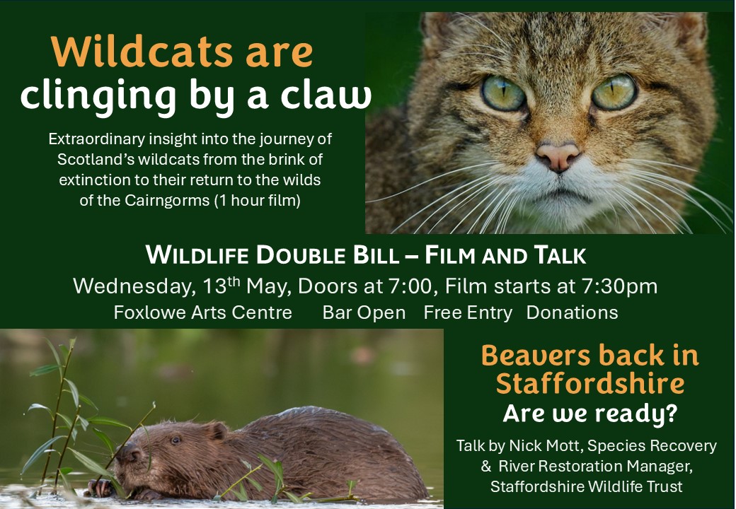 - Wildlife Double Bill – Wildcats on Film & A Talk about Beavers in Staffordshire
